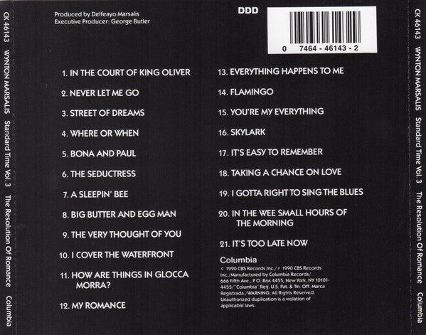 Wynton Marsalis – Standard Time Vol. 3 (The Resolution Of Romance) CD VG+/VG+